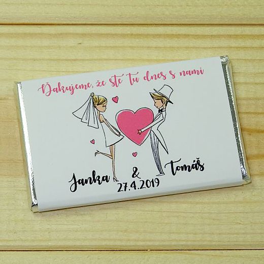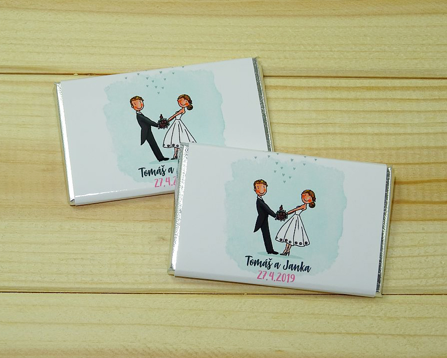 Čokoládky pro potěšení svatebních hostů. Do mističky v candy baru, doplněk výzdoby svatebních stolů, jmenovka pro zasedací pořádek nebo sladkost k pozvánce na svatbu.